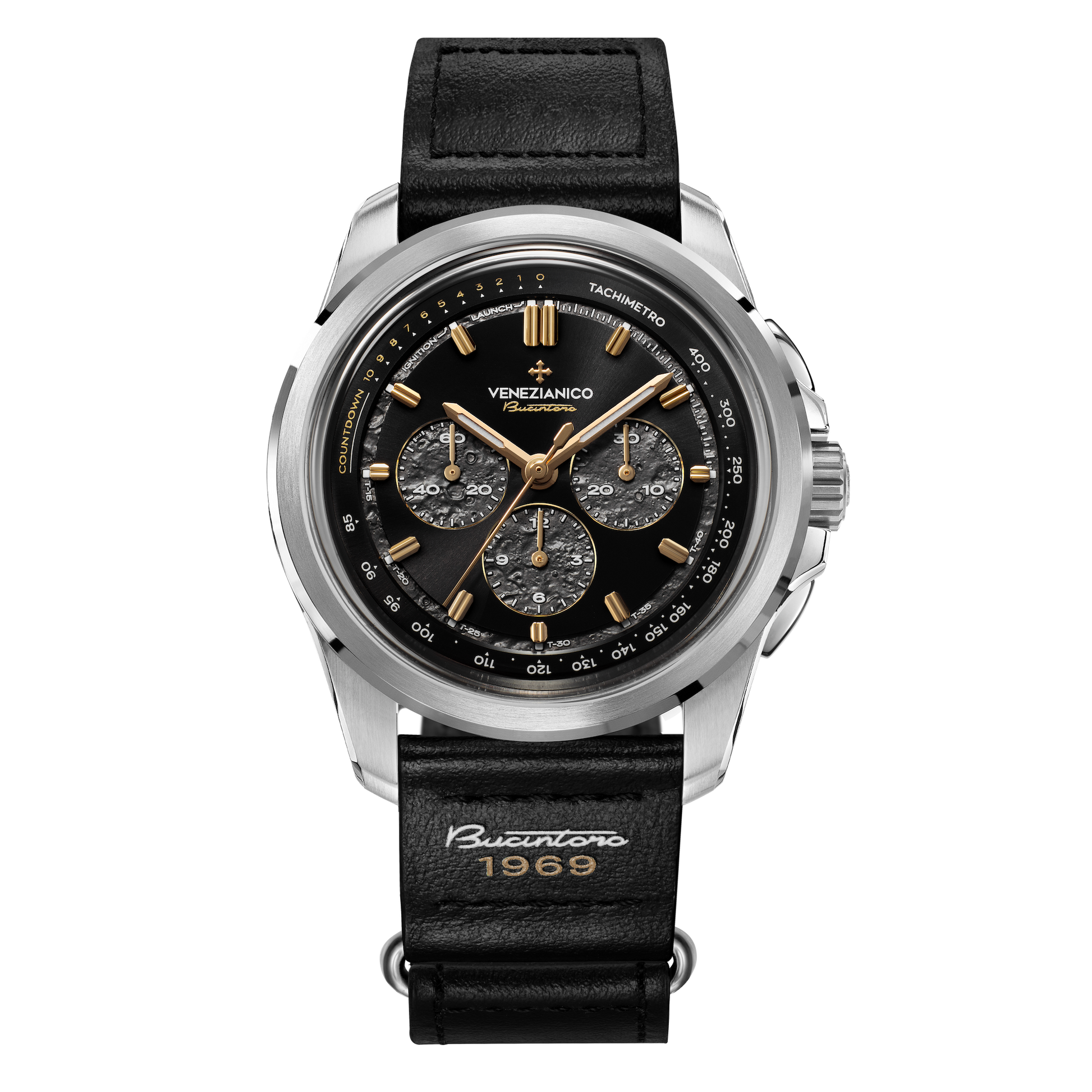 Guided by our pioneering spirit, we embarked on an adventure in Switzerland in search of 69 Lemania 1873 movements, true treasures of Swiss watchmaking from the 1970s. These movements, in addition to recounting the history of watchmaking, commemorate one of the most significant events in human history: the 1969 Moon landing. In six months, we completed a meticulous restoration process, breathing new life and splendor into these mechanical jewels, the beating heart of the Bucintoro 1969 Limited Edition.